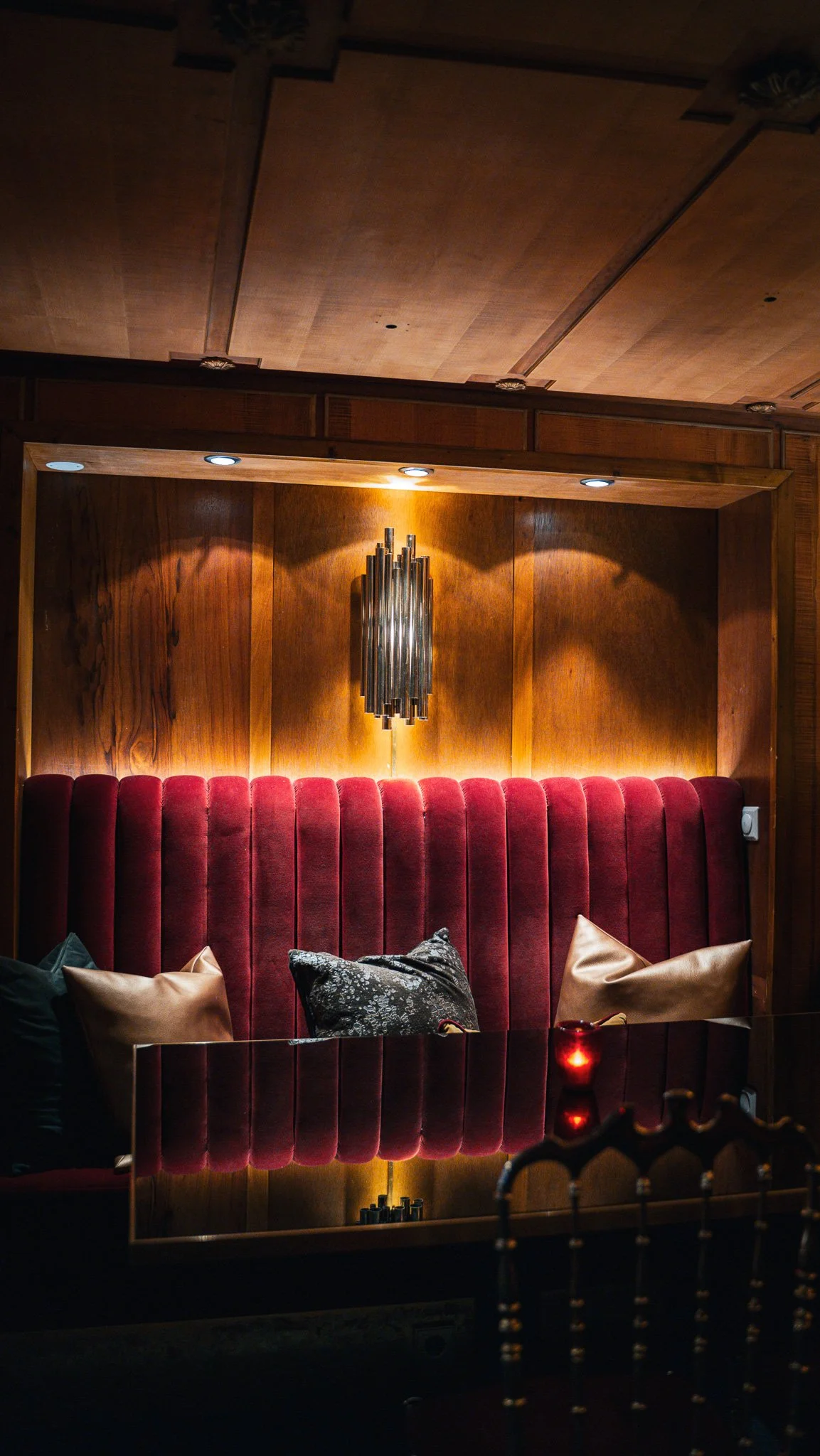Like a reflection in glass, she exists in duality: the softness of fabric against the sharpness of ink, the decadence of Art Deco reimagined through a contemporary lens. A woman not merely adorned, but armoured—her presence as intoxicating as the bottles lined behind her.